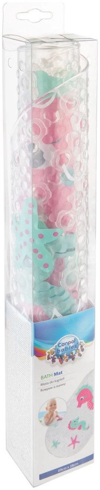 Πρακτικό, αντιολισθητικό χαλάκι μπάνιου LOVE&SEA με βεντούζες. Σχεδιασμένο για χρήση σε μπανιέρες μωρού, μεγάλες μπανιέρες και ντουζιέρες. Αποτρέπει την ολίσθηση του μωρού την ώρα του μπάνιου. Κατασκευασμένη από υψηλής ποιότητας καουτσούκ. Το ελκυστικό σχέδιο θα ενθαρρύνει το μωρό σας να κάνει μπάνιο. Διαστάσεις: 69x38cm