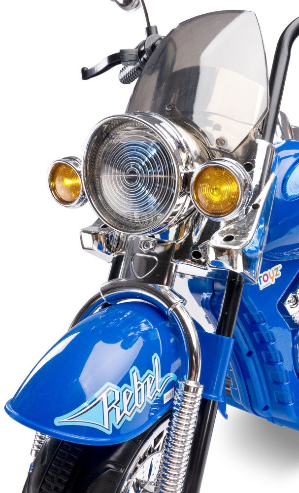Η Rebel είναι μια τέλεια επιλογή για τους μικρούς λάτρεις της μοτοσυκλέτας. Θα συνοδεύσει το μωρό σας για πολλά χρόνια διασκέδασης και περιπέτειας. Η Rebel κινείται με δύο ηλεκτρικούς κινητήρες (συνολικά 30 Watt), που παρέχονται με μπαταρία 7Ah. Είναι κατασκευασμένη από υλικά και εξαρτήματα υψηλής ποιότητας. Μεγάλη διάρκεια παιχνιδιού – το όχημα κινείται με δύο ισχυρούς ηλεκτρικούς κινητήρες που παρέχονται με μια μεγάλη μπαταρία. Glam φώτα LED μπροστά και στα πλαϊνά του οχήματος θα εντυπωσιάσουν όλους τους φίλους της παιδικής χαράς. Εύκολο στη χρήση. Ενσωματωμένες μελωδίες. Σαφής χειροκίνητη και εύκολη συναρμολόγηση. Αποτελείται από 2 ηλεκτροκινητήρες (συνολικά 30W), 1 μπαταρία (6V 7Ah)Για ηλικίες + 3 ετών και μέγιστο βάρος 25kg. Διαστάσεις: Μ108x. Π58x. Υ79cm