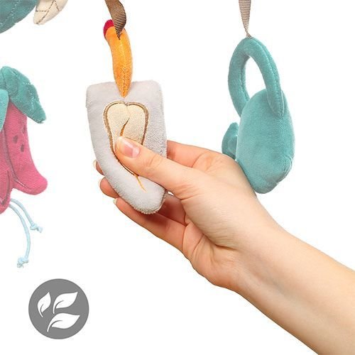 Κρεμαστό παιχνίδι για κάθισμα αυτοκινήτου εισάγει το παιδί σας σε έναν ποικίλο κόσμο χρωμάτων, ήχων και σχημάτων. Κατάλληλο για παιδιά από 0 μηνών (0m+)Υλικό: 100% Πολυεστέρας. Διαστάσεις: 22x28x4cm. Βάρος: 0,11kg