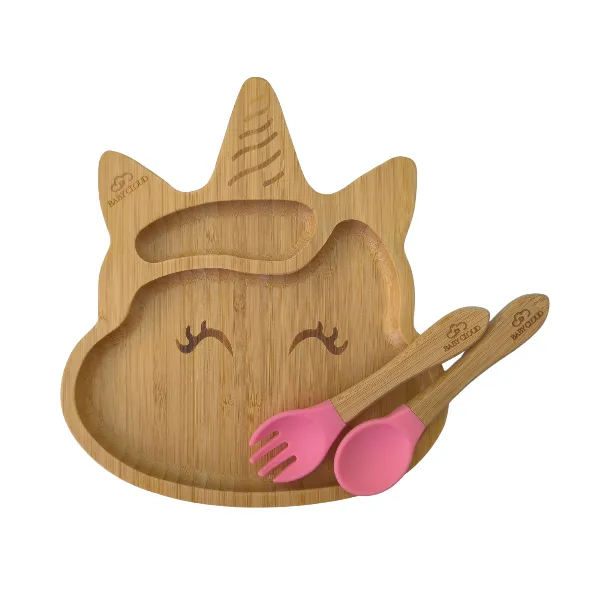 Πιάτο Φαγητού από Bamboo με Κουτάλι/Πιρούνι – Μονόκερος Ροζ