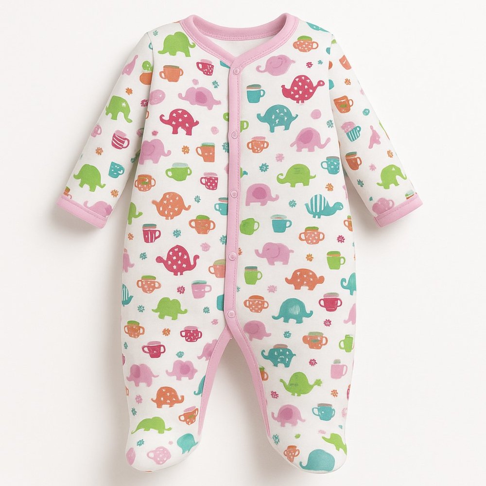 Φορμάκι με κλειστά ποδαράκια και κλιπς100% βαμβακερό Χαρούμενο με έντονα χρώματα σχέδιο
